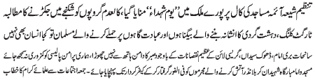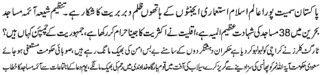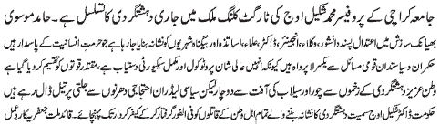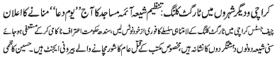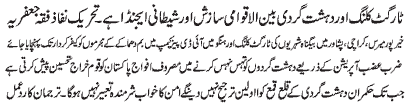| ISLAMABAD, September 27: The target killing of Syed Ali Raza Zaidi in Peshawar and terrorism on police squad in Karachi is an act of open terrorism - TNFJ | |||