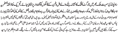 RAWALPINDI, September 21: Target killings have made the life of ordinary people unbearable; the banned groups must be dealt with iron hand - Qamar Zaidi |
