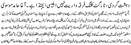 ISLAMABAD, September 24: Target killings and terrorism is not a sectarian but a colonial agenda - Hamid Moosavi |