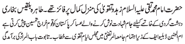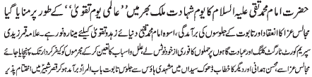ISLAMABAD, September 26: Aalmi Ayame Taqwa was observed to commemorate the martyrdom anniversary of Imam Mohammad Taqi (PBUH) |
