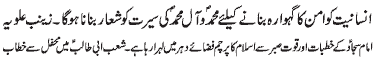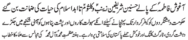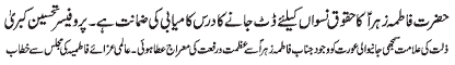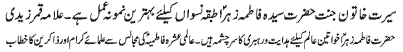 | ISLAMABAD, March 20: The pious character of Hazrat Fatima is the complete code of life for women to follow - Qamar Zaidi | |||