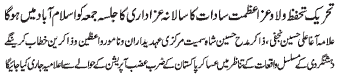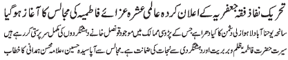 RAWALPINDI, March 30: TNFJ announced the observation of the countrywide Ayyame Madre Abbas (PBUH) |