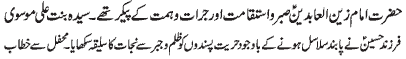 ISLAMABAD, March 3: The pious personalities of Aale Mohammad (PBUT) took courageous stand against the difficulties faced by humanity |