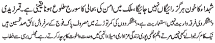 | ISLAMABAD, March 10: The blood of martyrs will not go astray; the sun of peace will soon rise in the motherland - Qamar Zaidi | |||