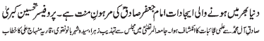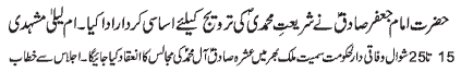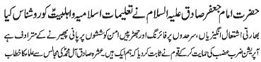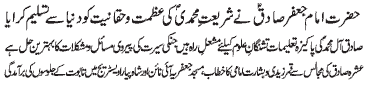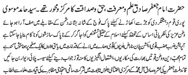 ISLAMABAD, August 6: Imam Jafar Al Sadiq (PBUH) introduced the teachings of Islam and the family of the Holy Prophet (PBUT) |