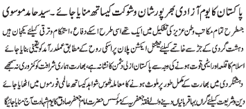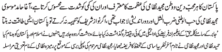 ISLAMABAD, August 2: Every Pakistani recognises the greatness of Majeed Nazami and misses his departure - Hamid Moosavi |