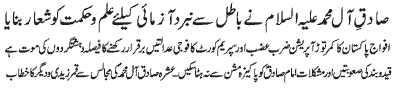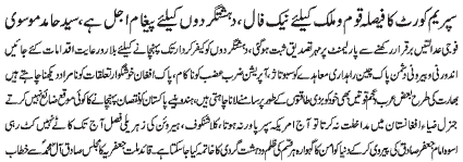 ISLAMABAD, August 7: The decision of the Supreme Court to keep the Army Courts is a good omen for the nation - Hamid Moosavi |