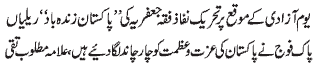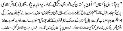 ISLAMABAD, August 13: The "Independence Day" will be observed as solidarity of the Armed Forces of Pakistan- Baqir Bukhari |