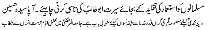 ISLAMABAD, August 16: In order to get freedom the pious character of Hazrat Abu Talib (PBUH) is a beacon light - Qamar Zaidi |