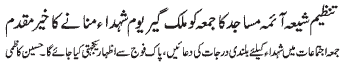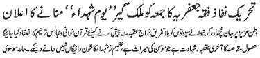 ISLAMABAD, August 21: On the call of TNFJ, the country-wide Youm-e-Shuhada will be observed today |