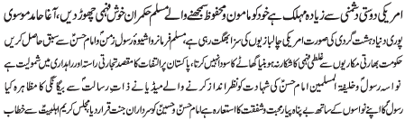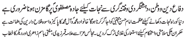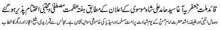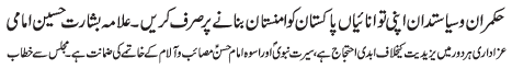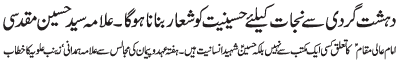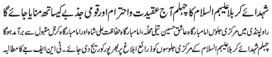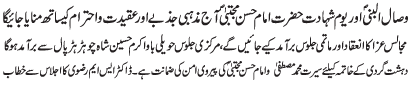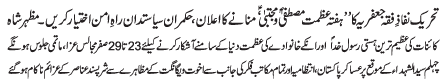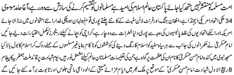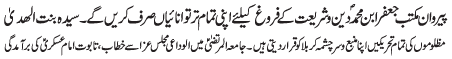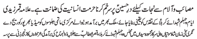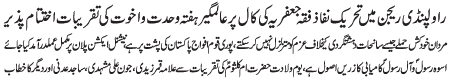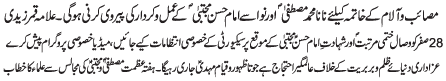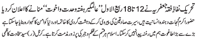 ISLAMABAD, December 5: TNFJ announced the observation of Hafta e Mustafa O Mujtaba (PBUH) from 23 - 29 Safar al Muzafar |