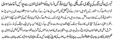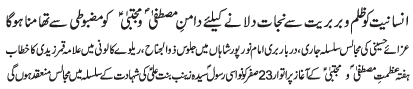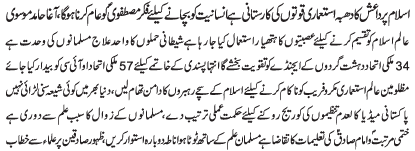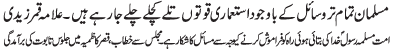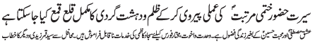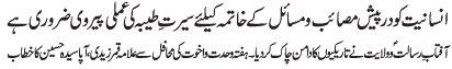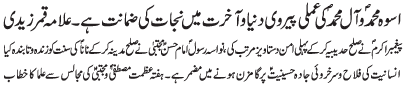 | RAWALPINDI, December 6: In order to free humanity from oppression, all will have to follow the teachings of Mustafa O Mujtaba (PBUT) | |||