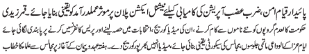 ISLAMABAD, December 15: For the success of Zarb e Azab; complete implementation of the national action plan must be ensured |