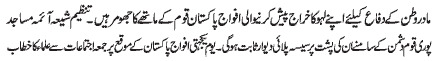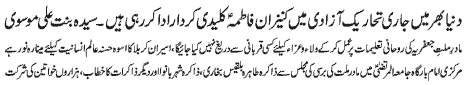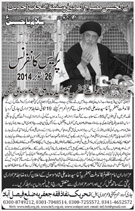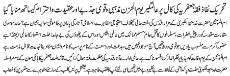 ISLAMABAD, June 23: TNFJ announced the observation of the Alamgeer Youm al Huzn to mark the death anniversary of Hazrat Khadija (PBUH) |