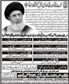 ISLAMABAD, June 30: TNFJ announced the observation of Youme Mukhtar e Aale Mohammad on 13 Ramzan to mark the martyrdom of Hazrat Mukhtar (RA) |