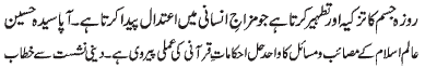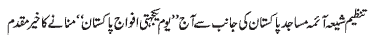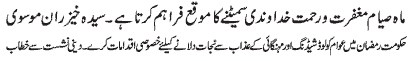 ISLAMABAD, June 13: TNFJ announced the observation of Ayyam e Istaqbal e Ramzan from 27-29 Shaba'an |