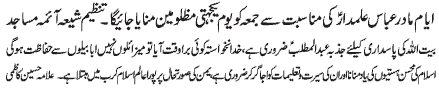 RAWALPINDI, March 30: TNFJ announced the observation of the countrywide Ayyame Madre Abbas (PBUH) |