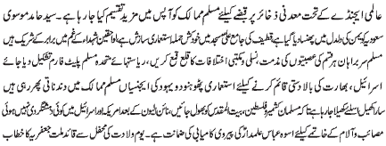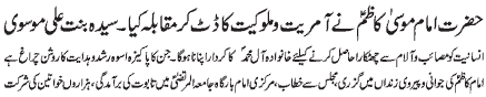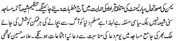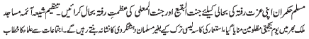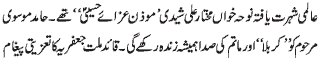 ISLAMABAD, June 8: High level meeting of Tehreek Nafaz Fiqh-e-Jafariya summoned; Quaid-i-Millat Jafariya Agha Syed Hamid Ali Shah Moosavi to preside |