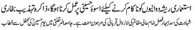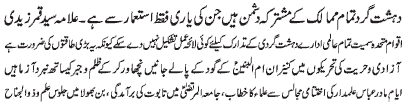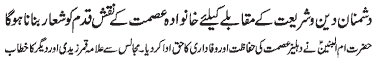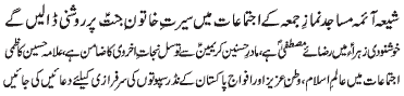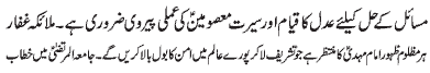| ISLAMABAD, April 19: The TNFJ announced the observation of the "Aalmi Ashra e Ajre Risalat" from 1 - 10 Rajab al Murajab | |||