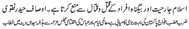 ISLAMABAD, April 15: In order to get freedom from problems teachings of Ahlebait (PBUT) must be adopted - Qamar Zaidi |