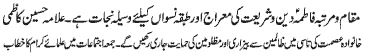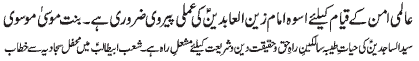 ISLAMABAD, May 6: Hazrat Zainab (S.A) gave strong replies to the blasphemers of the Prophethood and elevated the dignity of Harmain |