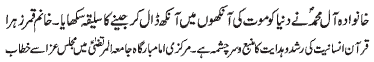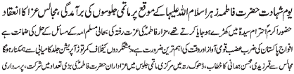 ISLAMABAD, March 25: Martyrdom anniversary of Fatima Zehra (S.A.) was observed with religious spirit, devotion and respect |