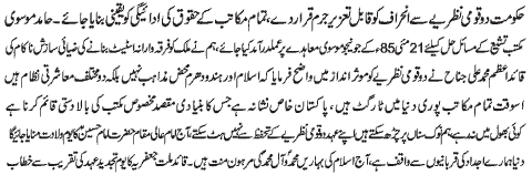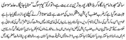 ISLAMABAD, May 8: The order of impracticable unified system of Azan should immediately be taken back - Maj (R) Baqir Bukhari |