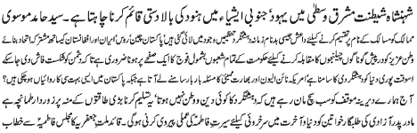 ISLAMABAD, March 6: Leader of the colonial powers desires to maintain supremacy of Zionists in Middle East and that of Hindus in South Asia - Hamid Moosavi |