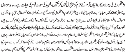 ISLAMABAD, April 28: The target killing of the brother of the TNFJ KPK, Abid Hassan Qazalbash is open terrorism - Hamid Moosavi |