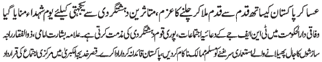| ISLAMABAD, April 16: The TNFJ announced the observation of the Youm e Dua for the Muslim nation to get freedom from problems | |||