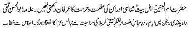 ISLAMABAD, April 26: The birth anniversary of Imam Al Hadi (PBUH) was celebrated with great respect |