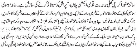 ISLAMABAD, June 7: The attack on the police van in Pashtoon Abad Quetta is a heinous crime of the enemies of the Zarb Azb Operation - Hamid Moosavi |
