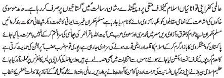 ISLAMABAD, May 20: International satanic powers are utilizing all their energies on the negative propaganda against Islam and blasphemy to the Holy Prophet (SAWW) |