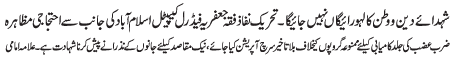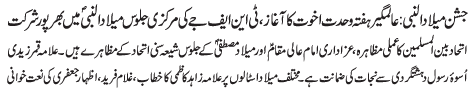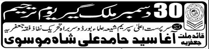 ISLAMABAD, December 6: Quaid e Millat e Jafariya Agha Syed Hamid Ali Shah Moosavi will raise Alam Pak today |