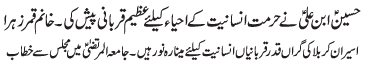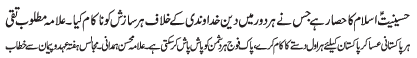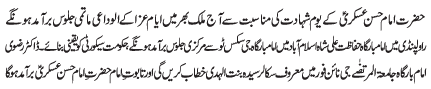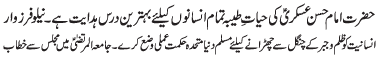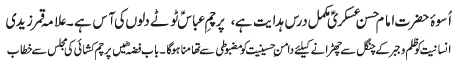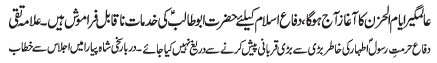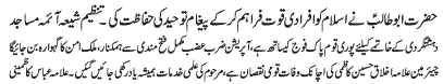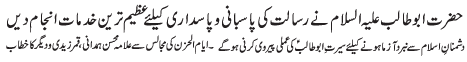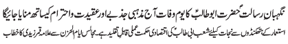 ISLAMABAD, December 21: In order to defend the religion and the country, the defence policy of Hazrat Abu Talib (A.S.) must be adopted |