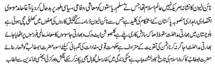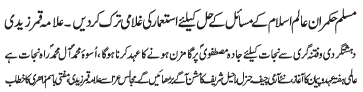 ISLAMABAD, December 2: In order to solve the problems of the Islamic World; the muslim rulers should get freedom from the colonial powers |