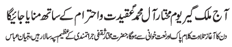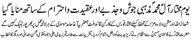 RAWALPINDI, December 15: Processions of Azadari and Miladun Nabi is a display of love towards Mohammad O Aale Mohammad and is a Ajre Rasalat - Qamar Zaidi |