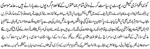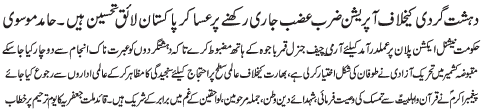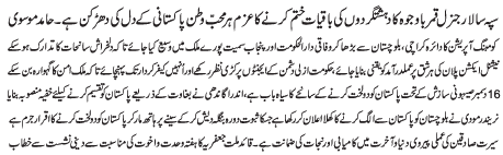 ISLAMABAD, December 3: The determination of General Qamar Bajwa to take Zarbe Azb operation to its conclusion is the voice of the nation - Hamid Moosavi |