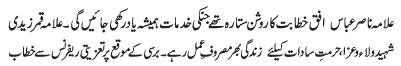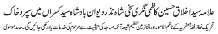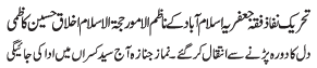 | ISLAMABAD, December 24: Allama Ikhlaq Kazmi laid to rest in Syed Kisraan | |||