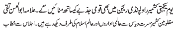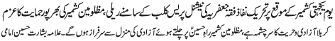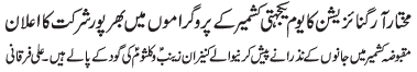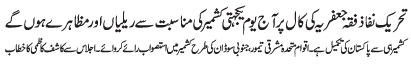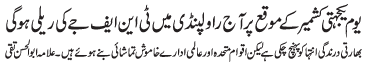 ISLAMABAD, February 5: On the call of the TNFJ peaceful rallies and protests will be held throughout the country to express solidarity with Kashmiris |
