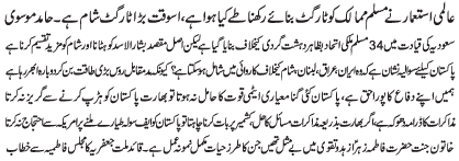 RAWALPINDI, February 27: The unity of Islamic world and peace in the Muslim countries is a death to the colonial powers |