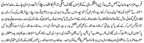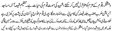 ISLAMABAD, February 3: The government should ensure the complete implementation of the NAP for the victory of Zarb e Azb - Sakhawat Kazmi |