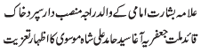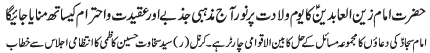 ISLAMABAD, February 24: The birth anniversary of Imam Zain al Abideen (A.S.) will be observed today with great respect |