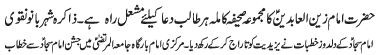 ISLAMABAD, February 25: Alas the UN that reaped the benefit of Saheefa-e-Kamila would have also followed the teachings of Imam Zainul Abideen (A.S.) |