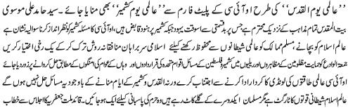 ISLAMABAD, July 1: Just like Youmul Quds Aalmi Youme Kashmir should also be observed from the platform of OIC - Hamid Moosavi |