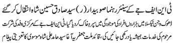 | ISLAMABAD, July 31: No sacrifice will be spared to protect Harmain Sharifain and for the restoration of the dignity of all holy places - Hamid Moosavi | |||