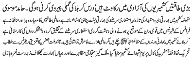 | ISLAMABAD, July 23: To provide moral and political support to the people of Kashmir is in line with the teachings of the Quaid e Azam | |||