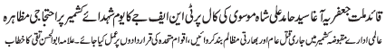 ISLAMABAD, July 18: The whole world is watching event if Kashmir, if the rulers made ignore this matter on their end then time will never forgive them - Hamid Moosavi |