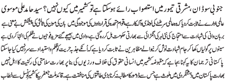 ISLAMABAD, July 17: If a rule apply on Eastimore and North Sudan then why that same rule ca not be applied in Kashmir |