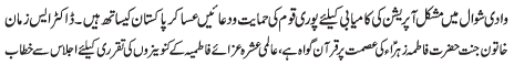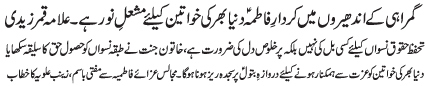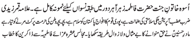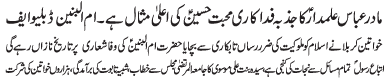 RAWALPINDI, March 24: The pious life of Hazrat Ummal Banin (S.A.) is the best example for women to follow |